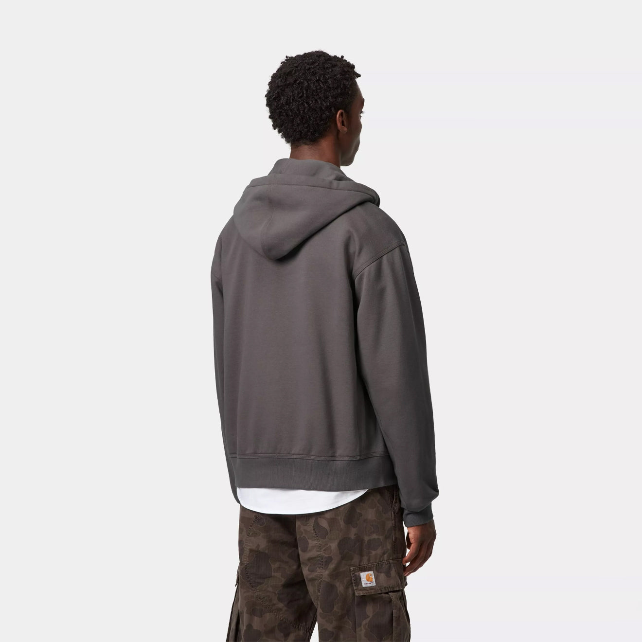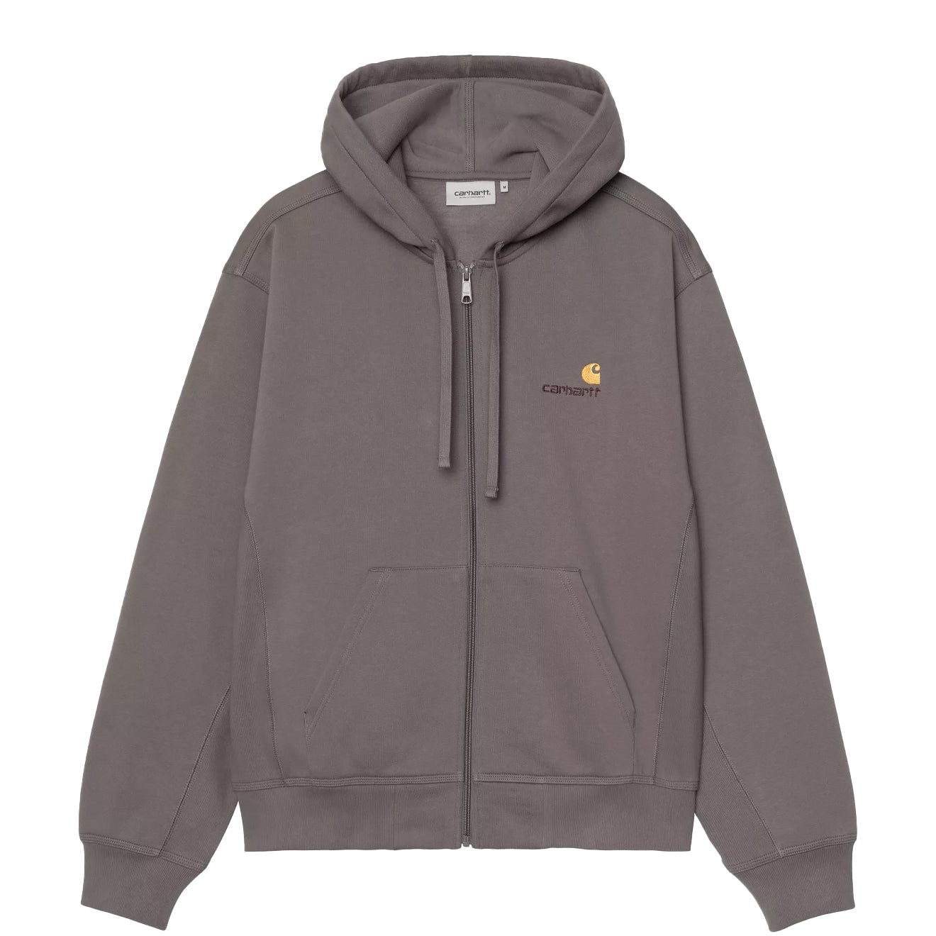 Regular price £110.00 £88.00 Save 20% Sale priceThe Carhartt WIP Hooded American Script Jacket in Porphyry is crafted from heavyweight polycotton jersey with a brushed, fleece-like backing for warmth and comfort. It has a loose fit with an adjustable hood, zip front closure, split kangaroo pocket, and two-tone American Script embroidery on the chest.