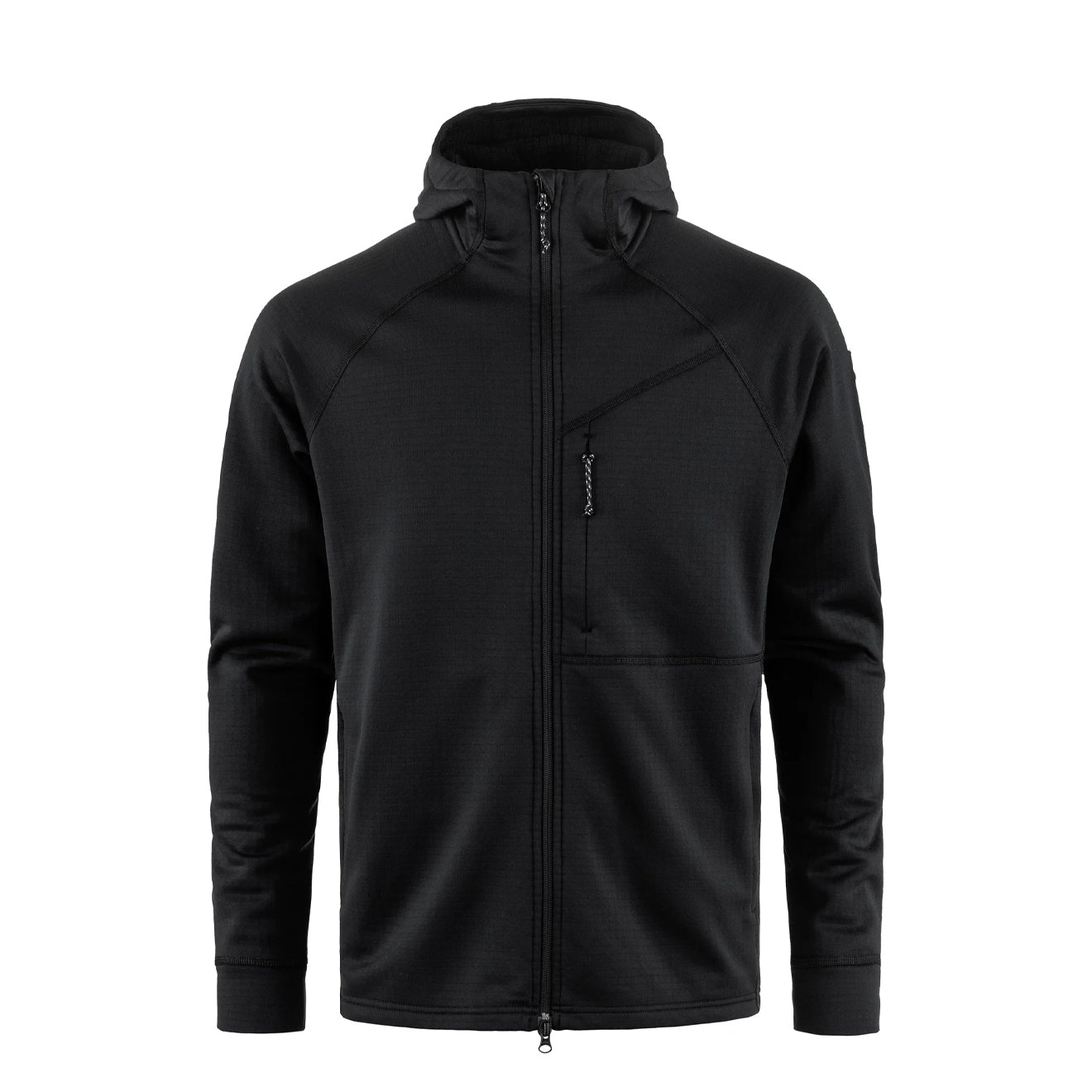Regular price £180.00 £144.00 Save 20% Sale priceThe Fjällräven Abisko Grid Fleece Hoodie in Black is a warm, hooded fleece with a knitted outer layer and lofted grid-structured inner for enhanced insulation. Made from recycled polyester, it is fast-drying and moisture-wicking, ideal as a mid-layer under a shell or on its own in cooler weather. Featuring a snug hood and full-length two-way zipper, it is versatile, packable, and perfect for hikes and outdoor activities.