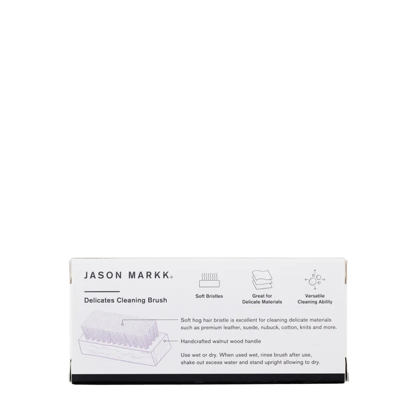 Regular price £10.00 £8.00 Save 20% Sale priceThe Jason Markk Delicates Cleaning Brush features a handcrafted walnut wood handle and soft hog's hair bristles, making it perfect for cleaning delicate materials like suede, mesh, and cotton canvas. Designed with care, this brush ensures your favourite shoes and accessories get the gentle cleaning they deserve without damaging the fabric.