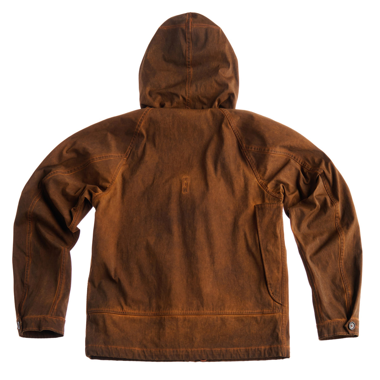Each anorak undergoes a painstaking hand-dye process, where layers of colour are applied until the perfect Terra di Siena tone is achieved. The result is a one-of-a-kind garment with rich tonal depth and lasting character. Designed with functionality in mind, it features a half-zip closure, adjustable hood and hem, and discreet pockets for everyday practicality.