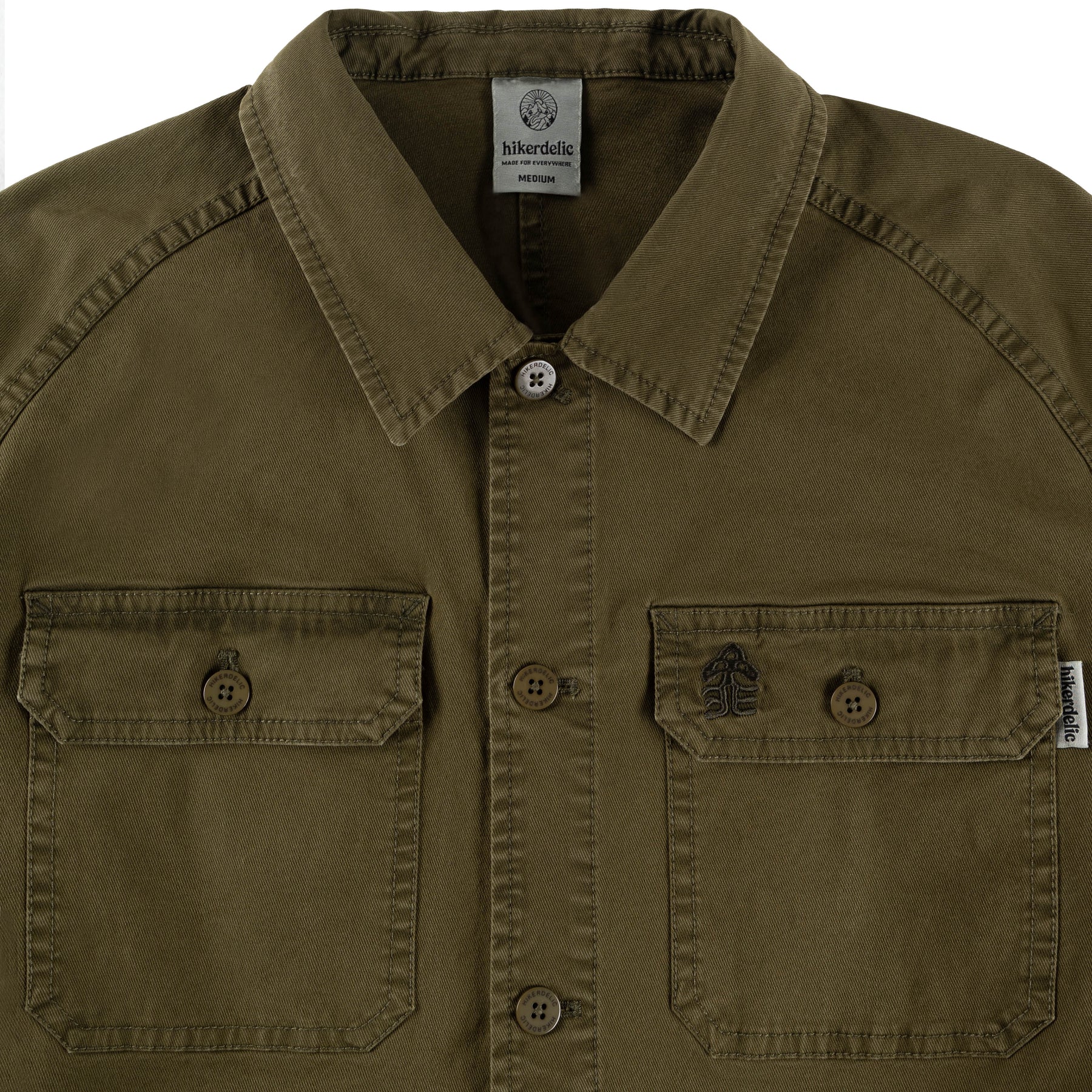Regular price £70.00 £56.00 Save 20% Sale priceThe Hikerdelic Utility Shirt in Lichen Green is a classic overshirt made from durable winter-weight cotton. Designed for everyday versatility, it offers comfort and practicality through all seasons, whether worn layered or on its own.