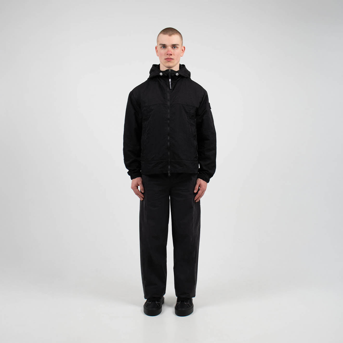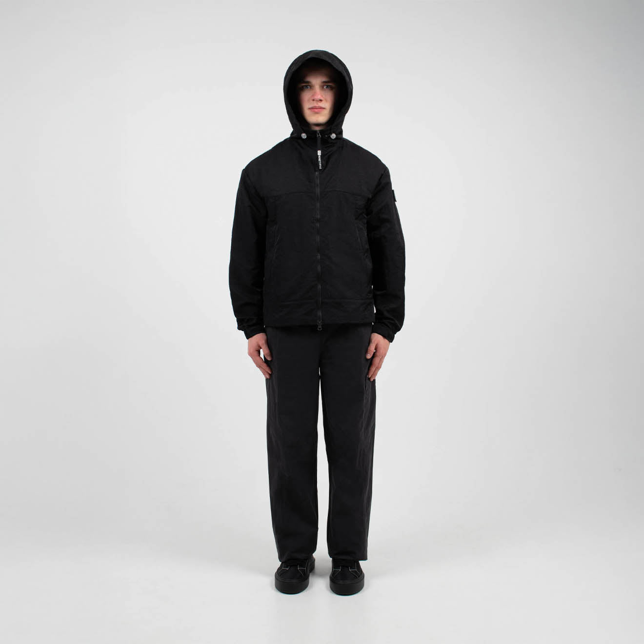 The ST95 Nera Jacket in Caviar blends technical performance with refined design. This product in this colour is crafted from 100% nylon and this product in this colour features a metallic finish, YKK double zipper, adjustable hood and cuffs, and central front panel pockets for practicality, finished with a branded ST95 globe patch on the left shoulder.