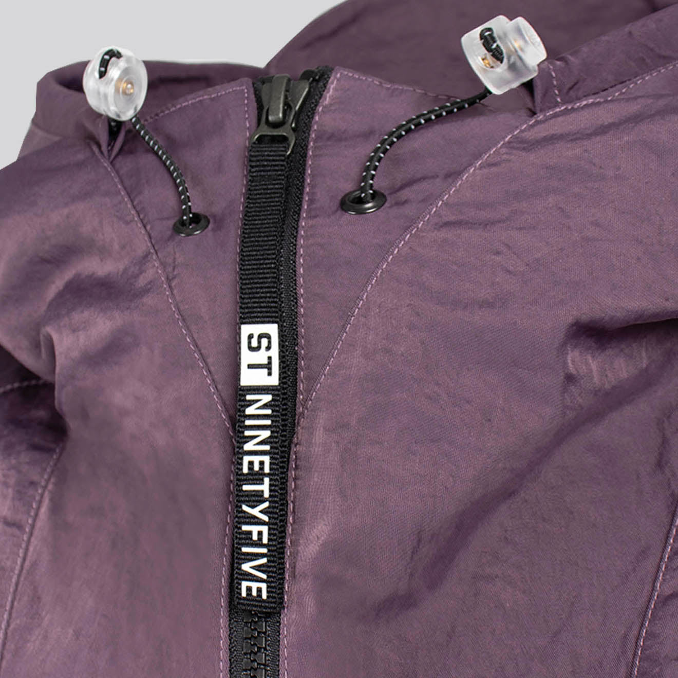 The ST95 Nera Jacket in Plum blends technical performance with refined design. This product in this colour is crafted from 100% nylon and this product in this colour features a metallic finish, YKK double zipper, adjustable hood and cuffs, and central front panel pockets for practicality, finished with a branded ST95 globe patch on the left shoulder.
