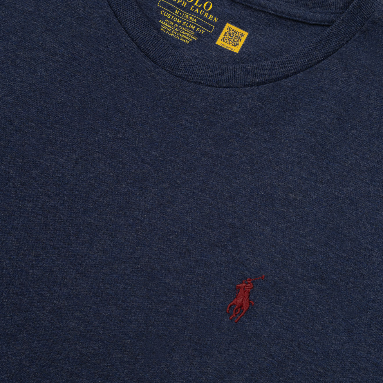The Polo Ralph Lauren Custom Slim Fit Jersey Long Sleeve T-Shirt in Spring Navy Heather is made from soft cotton jersey with a vintage-inspired wash for a lived-in feel. Featuring a classic crewneck, long sleeves with rib-knit cuffs, and the signature embroidered Pony at the chest, it is a versatile staple for everyday wear.
