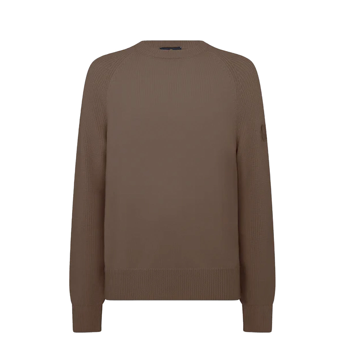 Regular price £250.00 £200.00 Save 20% Sale priceThe Belstaff Aspect Crewneck Jumper in Major Brown is a men's sweater crafted from extra-fine merino wool. Its soft, warm fibres make it an ideal first layer against the cold, combining comfort with classic style.