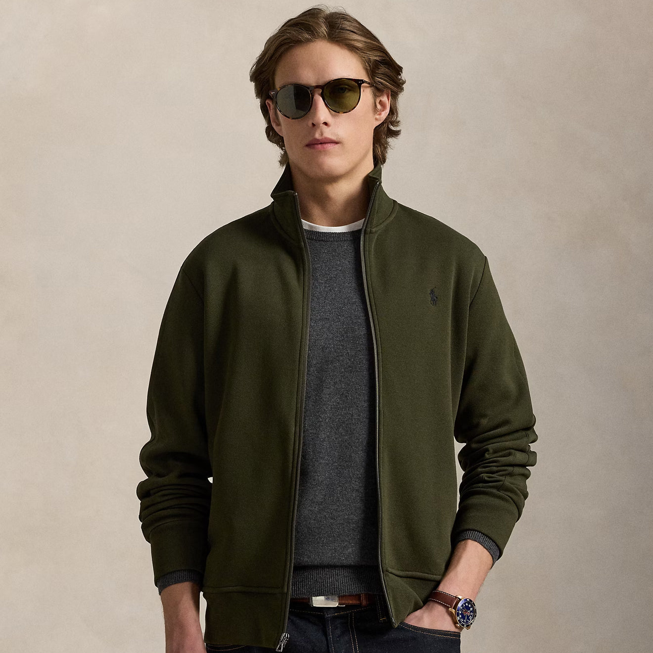 Polo Ralph Lauren Double Knit Track Jacket Company Olive