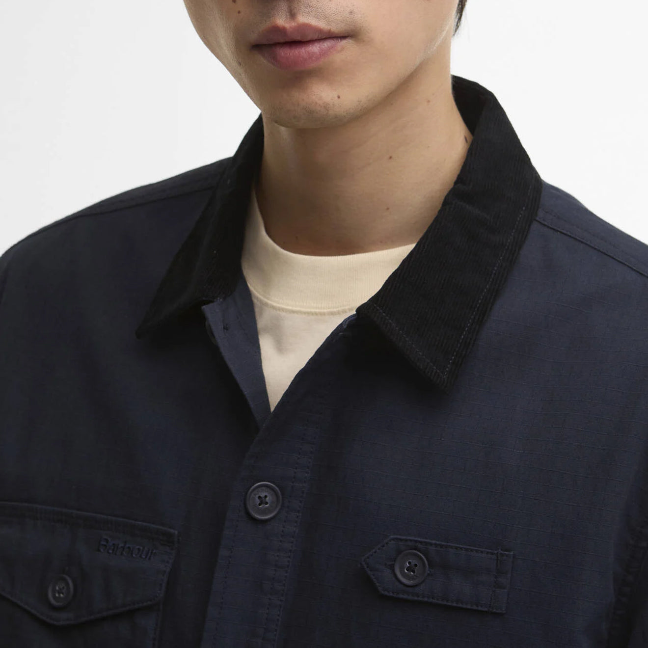Regular price £159.00The Barbour Endurance Ripstop Overshirt in Navy is designed for classic style with practical performance. Made from 100% cotton ripstop, it has a relaxed fit, button-through front, and corduroy collar, complemented by functional pockets and tonal Barbour embroidery.