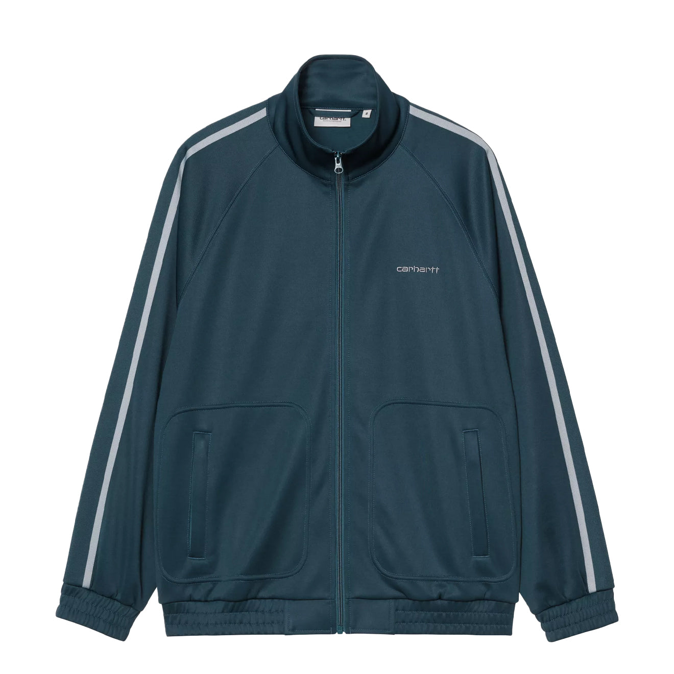 Regular price £110.00The Carhartt WIP Bolar Sweat Jacket in Blue River / Mirror is a relaxed layering piece built from midweight, unbrushed polycotton fabric. Its loose fit and raglan sleeve construction create an easy, comfortable silhouette, while knitted tape detailing along the arms introduces a refined athletic influence. Front welt pockets add everyday functionality, and the embroidered Script Logo provides a signature finish.