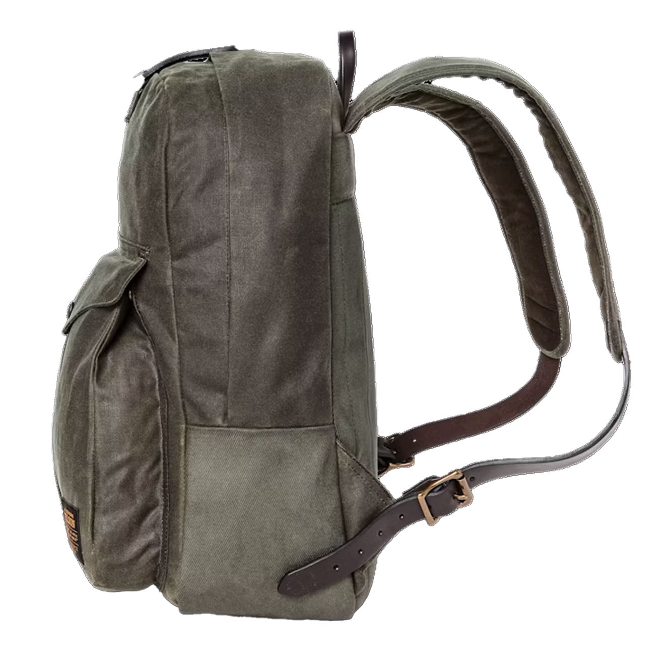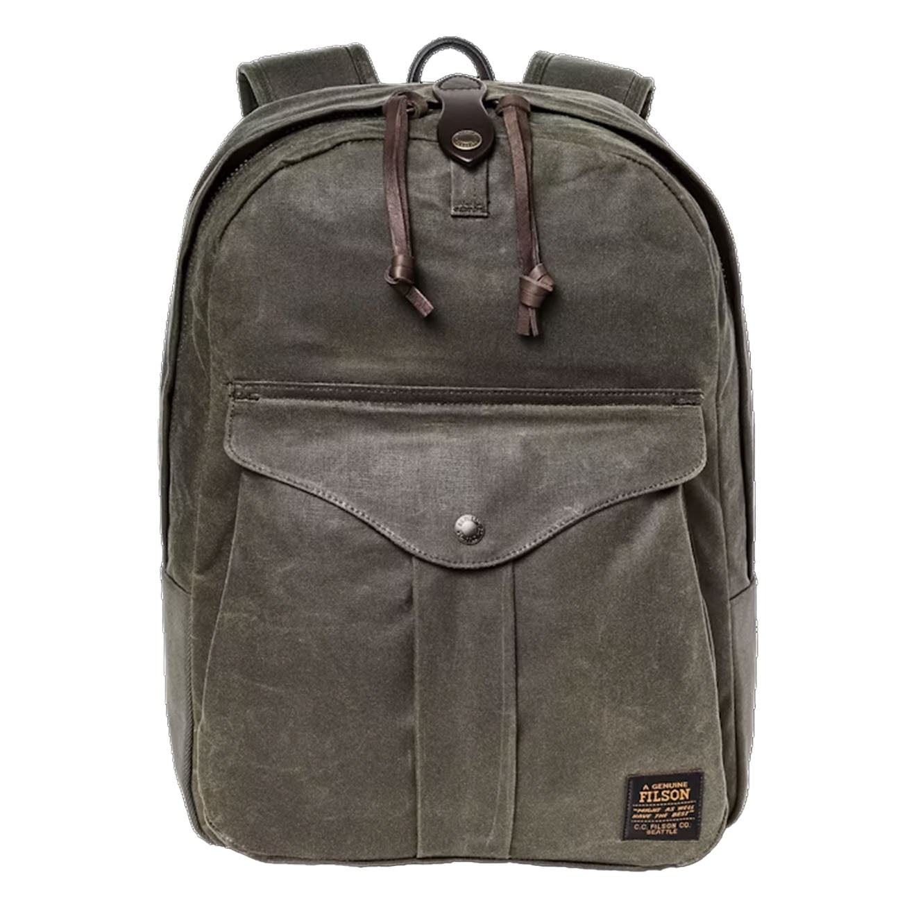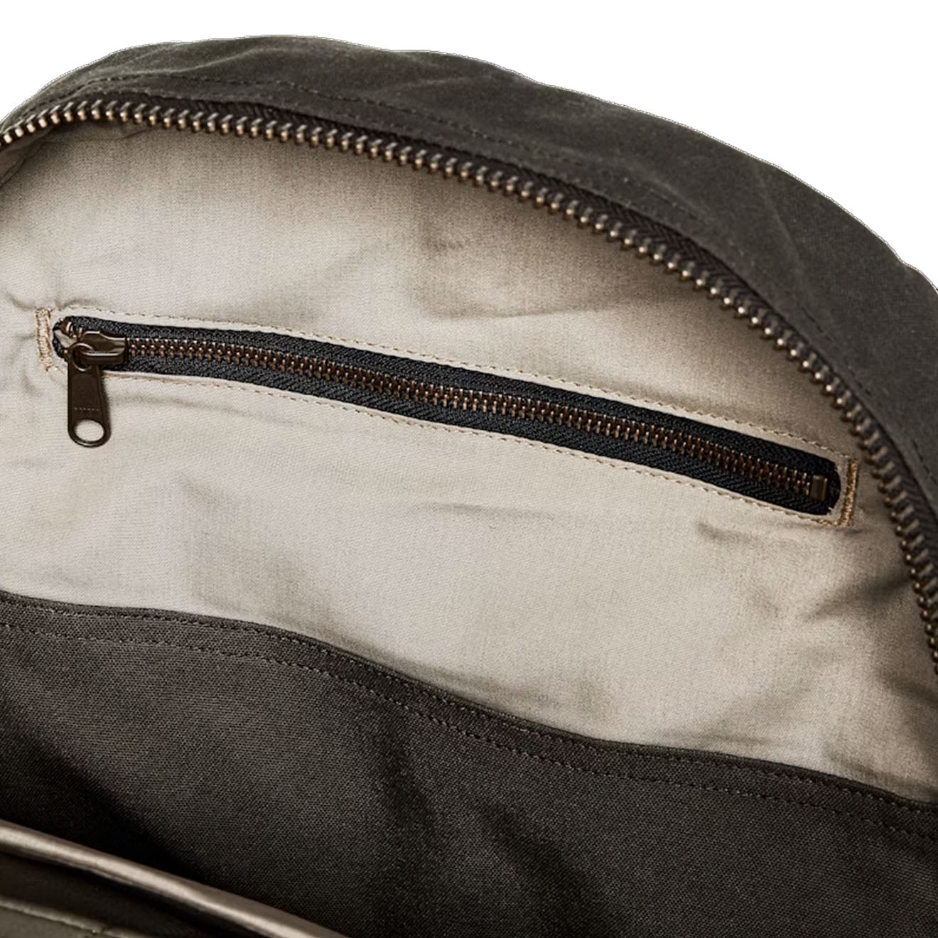 Regular price £400.00 £320.00 Save 20% Sale priceThe Filson Journeyman Backpack in Otter Green combines generous capacity and comfort for trails or jobs. Made from water-repellent Tin Cloth with a durable Rugged Twill back panel, it features padded Moleskin-lined shoulder straps secured with vegetable-tanned Bridle Leather from Wickett and Craig. The main compartment, secured by a brass YKK® zipper protected by a Tin Cloth gutter, includes a padded pocket for a 15” laptop. A gusseted exterior pocket expands for extra capacity, and Bridle Leather details enhance durability and style. This thoughtfully designed backpack offers reliable service without drawing attention to itself.