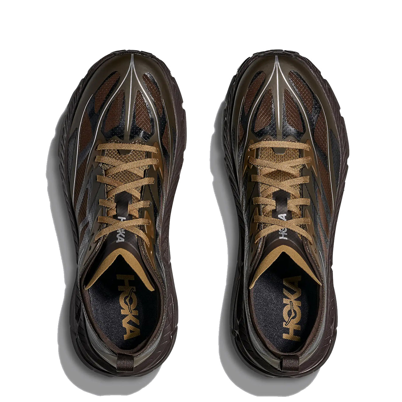 Redefining the boundaries between trail performance and everyday wear, the Hoka Mafate Speed 4 Lite Trainer in Tree Bark / Cast Iron pairs a minimalist, see-through upper with serious off-road capability. Engineered on the Mafate Speed 4 chassis, it offers dynamic cushioning and dependable traction, all wrapped in a bold, lightweight design.