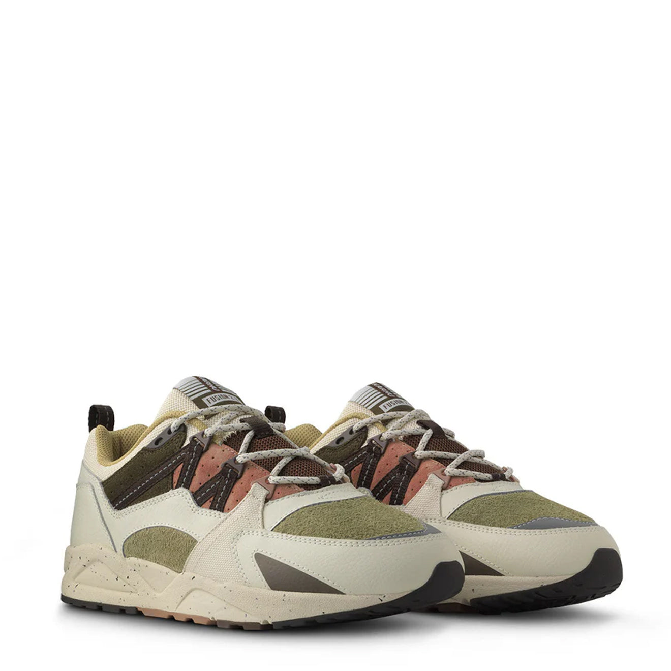 The Karhu Fusion 2.0 Trainer in Lily White / Mole brings back a legendary 1996 design, updated for modern comfort and everyday versatility. The neutral colour palette enhances the model’s timeless aesthetic, making it an easy addition to a wide range of styles. Constructed from premium grained leather, suede overlays, and breathable mesh, the sneaker balances durability with comfort. Textural hairy suede underlays, rope laces, and reflective accents add subtle detail, while the speckled midsole delivers a distinctive finishing touch.