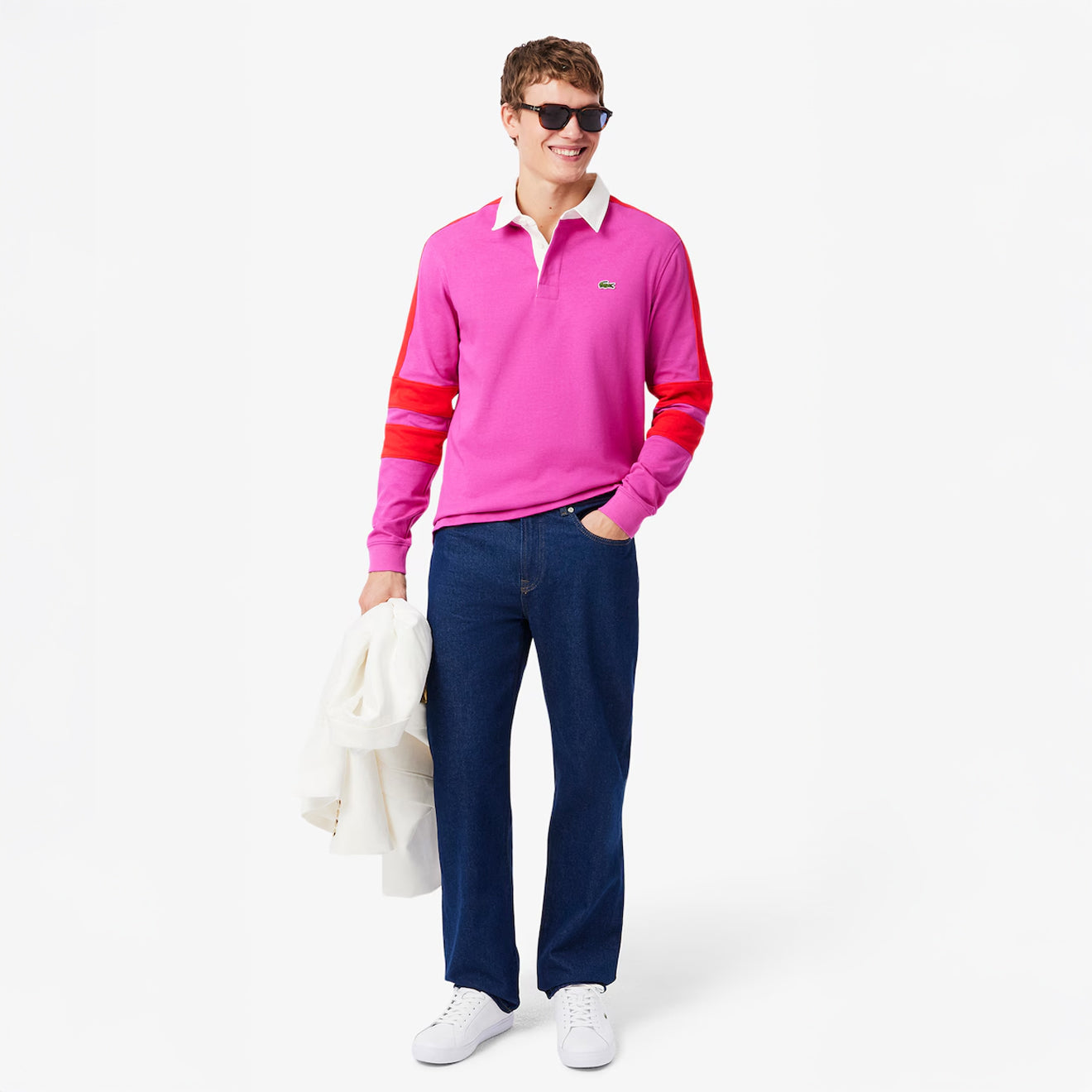 - Embroidered crocodile logo on the side panel