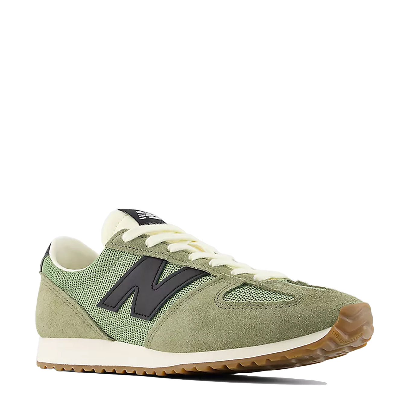• Leather accents on ‘N’ logo, collar, and heel