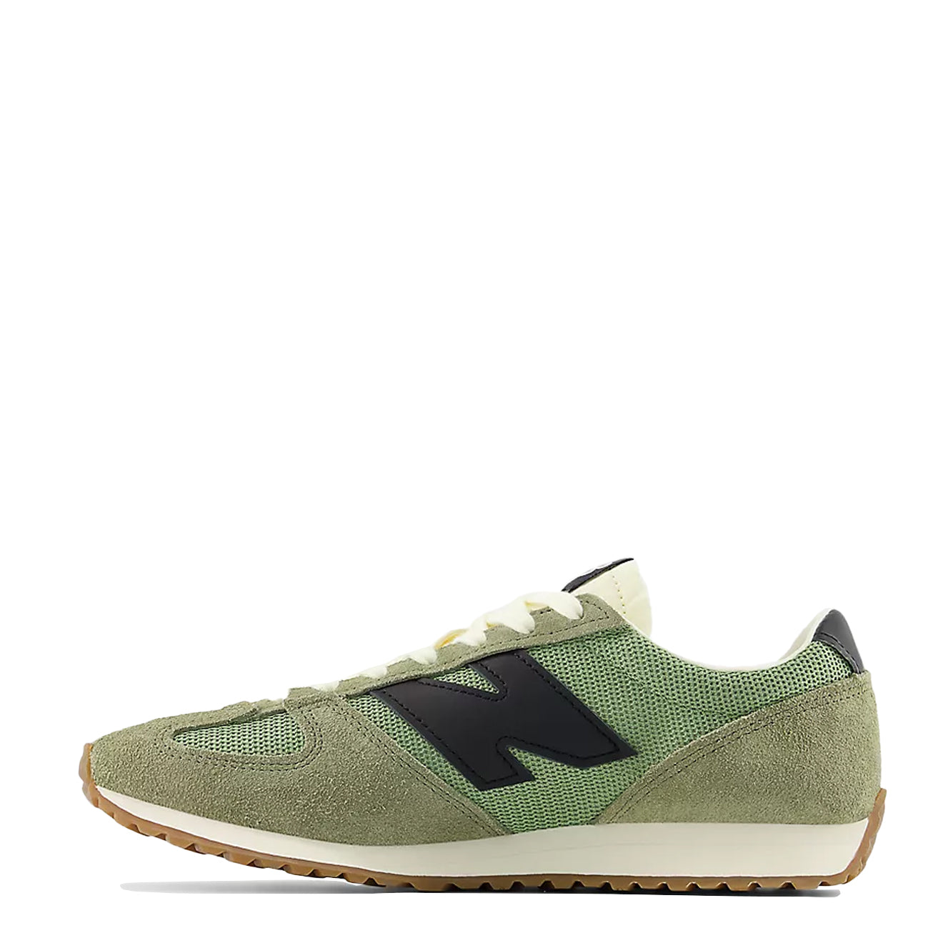 Regular price £90.00The New Balance 471 Trainer Oregano / Dark Olivine blends retro ’70s running heritage with contemporary design. The trainer has a breathable mesh upper with hairy suede overlays, leather details at the logo, heel, and collar, and a wedge-shaped EVA midsole for comfort. Distinctive features include a ‘fang’ toebox overlay and an exposed foam tongue for a vintage aesthetic.
