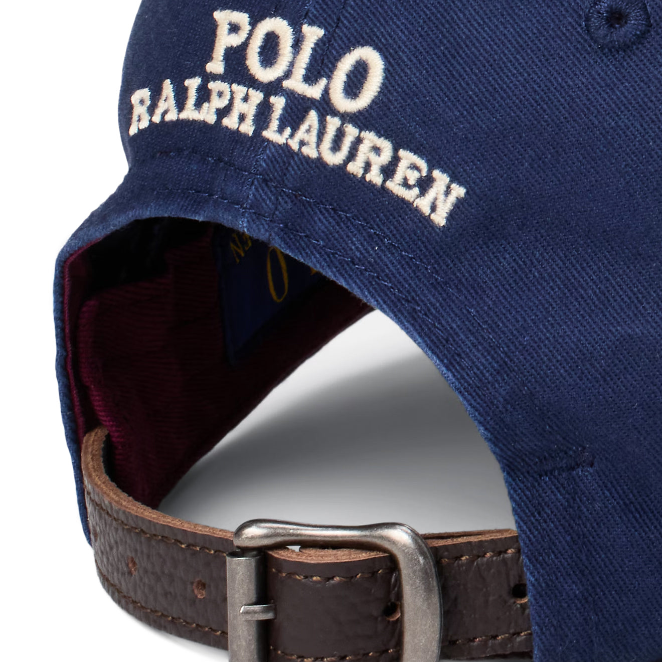- "Polo Ralph Lauren" embroidery and adjustable buckled leather strap on the back