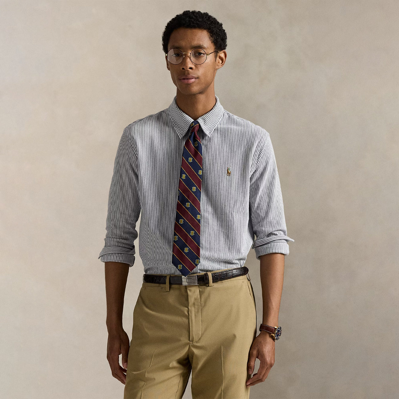 Polo Ralph Lauren Striped Knit Oxford Shirt Newport Navy / White