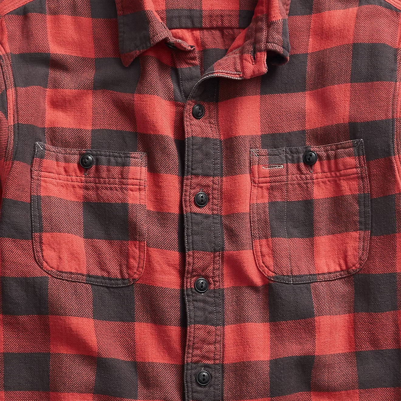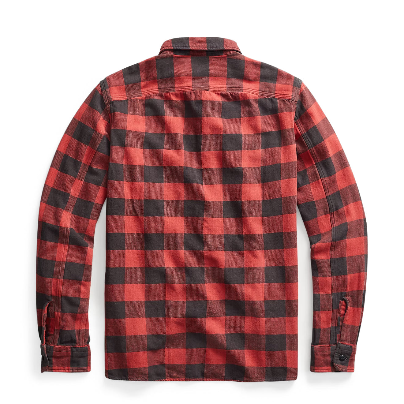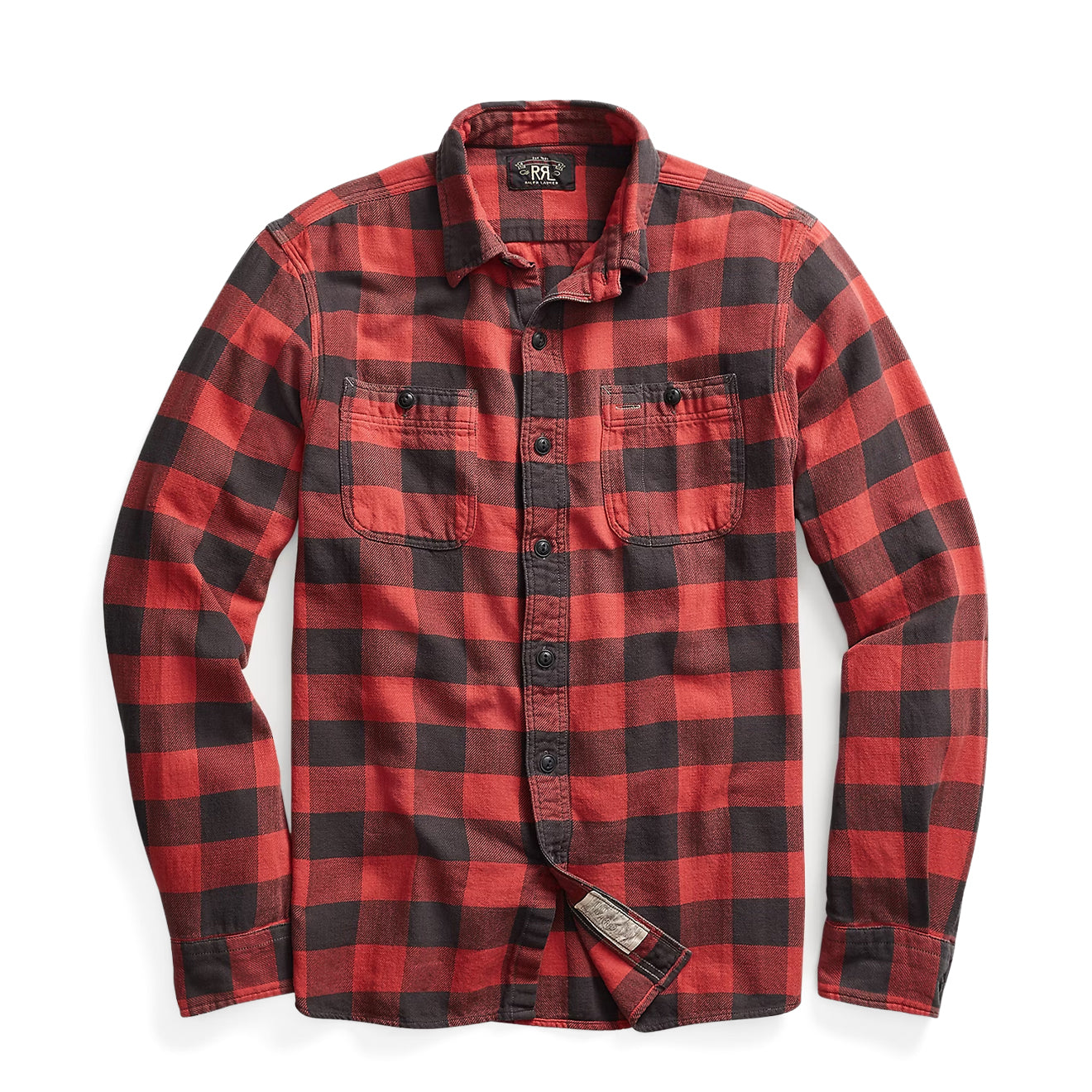 Regular price £200.00The RRL By Ralph Lauren Farrell Long Sleeve Sport Shirt in RL Red Black is crafted from lightweight cotton twill and features a yarn-dyed plaid pattern. Workwear-inspired detailing includes two chest utility pockets and buttoned barrel cuffs, offering both style and practical function. A relaxed fit and breathable fabric make this shirt a versatile everyday essential.