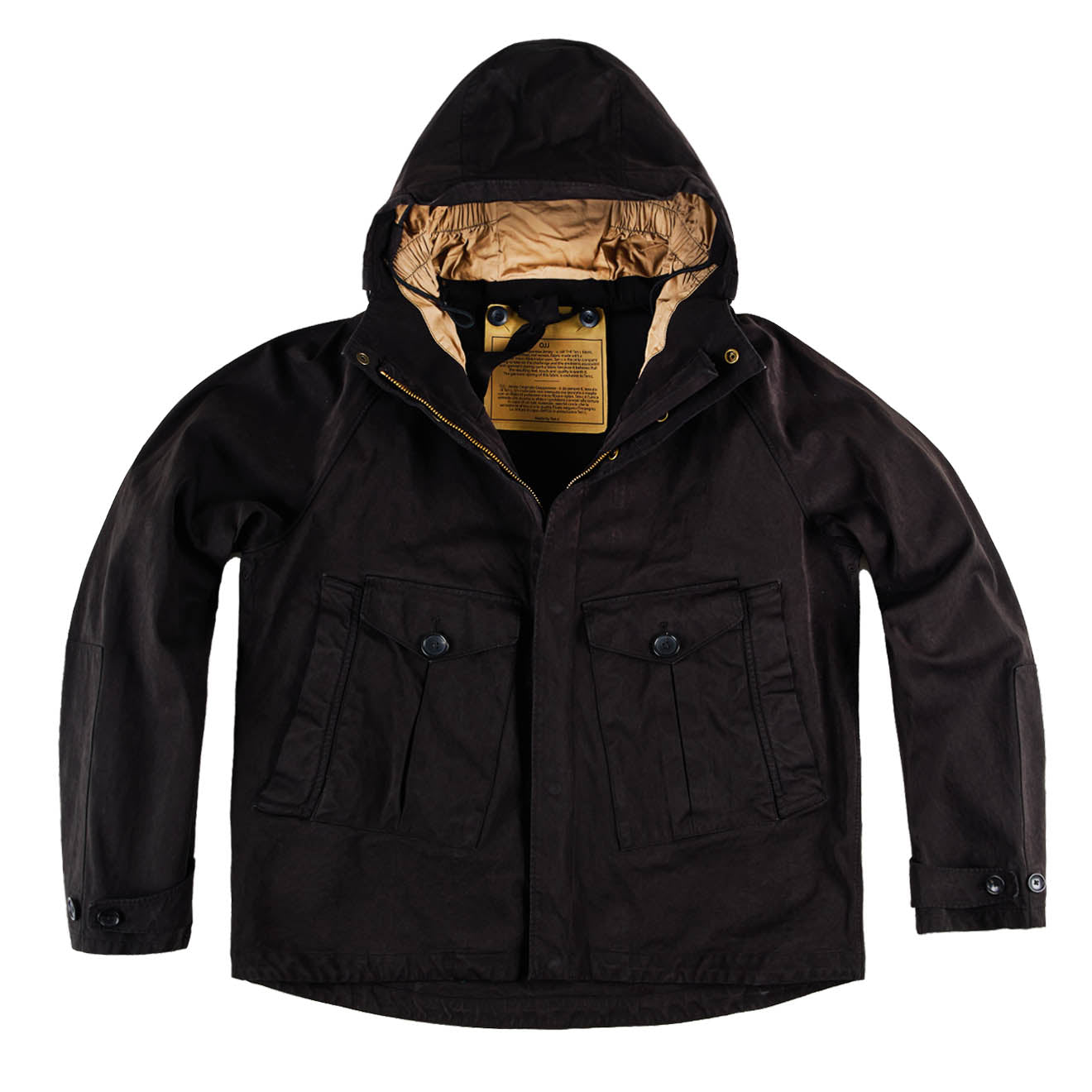 Regular price £1,250.00The Ten C Tempest Anorak in Black is a contemporary take on the traditional field smock. Designed as an open-front version of the classic camouflage pullover, it features a generously sized hood originally intended to fit over protective headgear. The raglan sleeve design enhances comfort and ease of layering, giving this piece a functional yet refined silhouette true to Ten C’s utilitarian ethos.